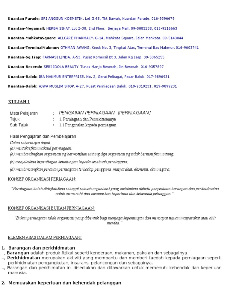 Nota Bab 1 Pengajian Perniagaan Pdf